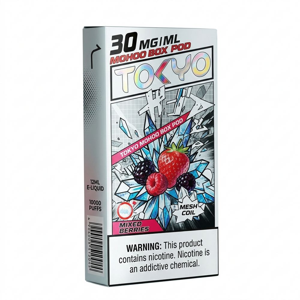Tokyo 東京魔盒 (Mohoo Box) 是追求個性化與「不喜歡太涼」用戶的救星。除了擁有14款超豐富的日系機身配色,它最大的特色是擁有市面少見的「無涼系」煙彈(如古巴雪茄、無涼葡萄)。搭配 500mAh 大電量與 Mesh 網芯,是顏值與實力兼具的選擇。